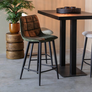 Barkruk Jelt van LABEL51 is een prachtige barkruk in de kleur oker velours, waar comfort en verfijning samen komen. De prachtige blokstiksels in combinatie met het 3D effect door de extra vulling vormen een lust voor het oog!