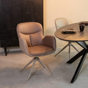 Eetkamerstoel Lasse van LABEL51 is een stijlvolle en moderne stoel die elke eetkamer naar een hoger niveau tilt. De zitting van Lasse is gestoffeerd met Canyon, wat er elegant uit ziet en bovendien makkelijk te onderhouden is doordat deze stof watervast is. De licht gekleurde stof zorgt voor een mooie, contrasterende textuur die warmte toevoegt aan elk interieur.